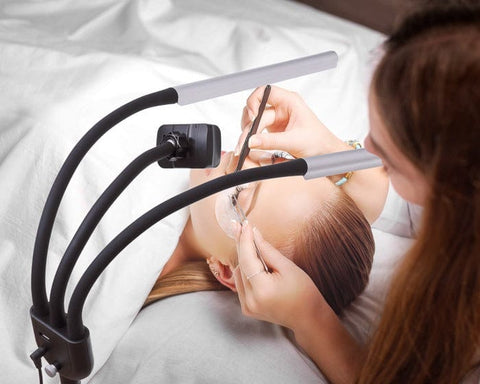 A LED Floor Lamp perfectly designed for beauticians, lashers, brow techs, tattoo artists, Vloggers.